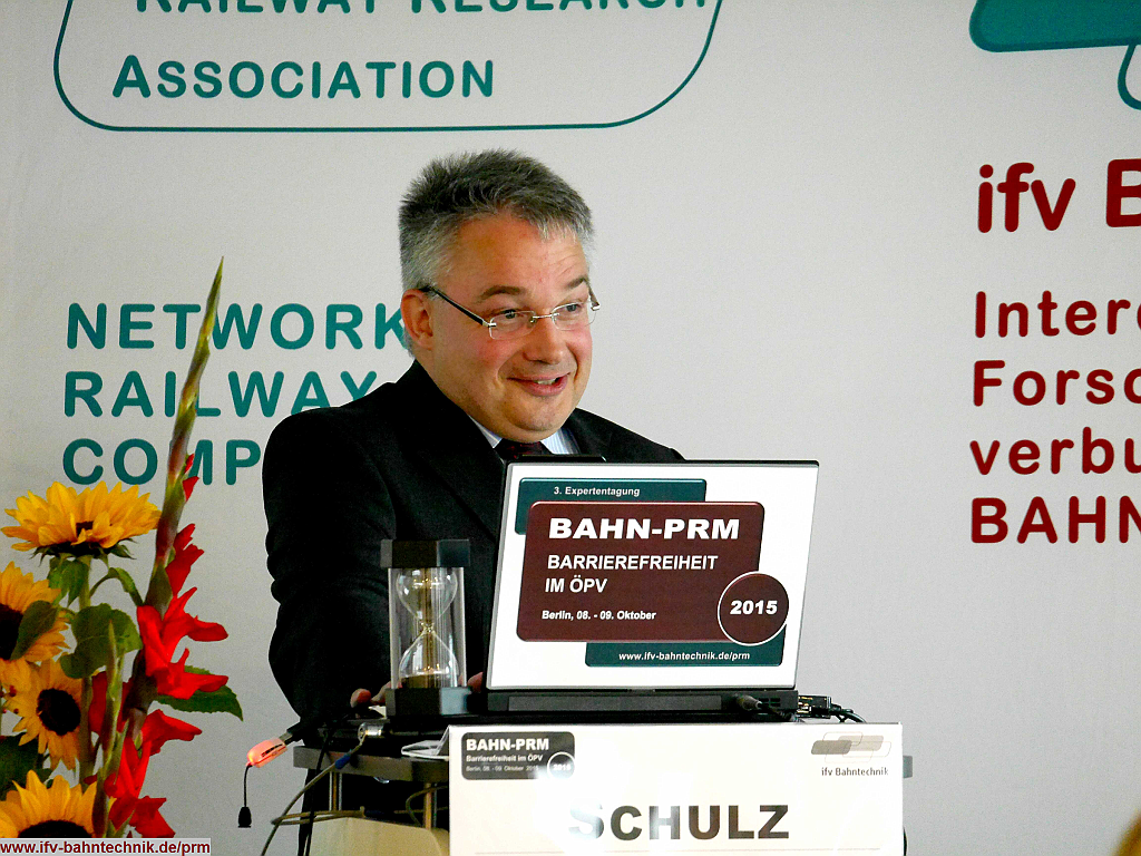 | Dipl.-Volkswirt Eckhard SCHULZ (Vereinsgeschäftsführer) - [IFV Bahntechnik e.V.] BAHN-PRM 2015 - Barrierefreiheit mobil mit Bus und Bahn: Begrüßung und thematische Einführung zum Thema PRM & Barrierefreiheit im Jahr 2015 | ||||||||